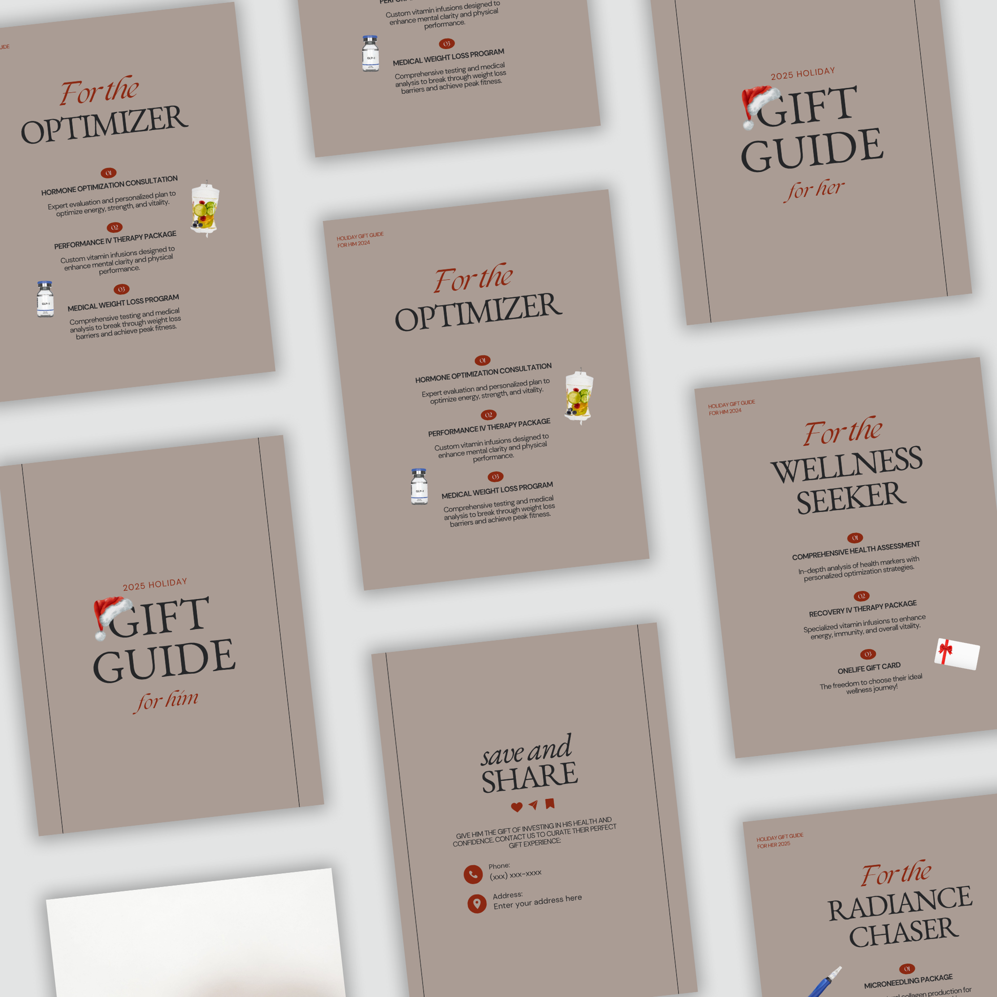 This bundle helps you showcase seasonal specials—like treatment banks, gift-card bonuses, one-day laser/facial features, filler offers, IV add-ons, and retail promos—with professional, scroll-stopping visuals.